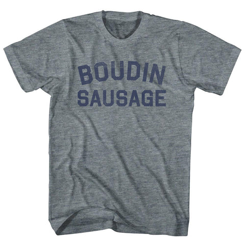 Product Story: Boudin Sausage Youth Tri-Blend T-shirtProduct Description: Boudin Sausage Youth Tri-Blend T-shirt Tri-Blend (Polyester, Rayon, Cotton) Buttery Smooth Soft Material Medium Weight Tee Soft Hand Print