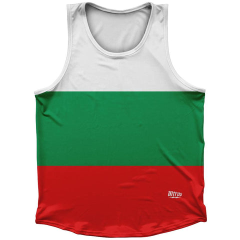 Product Story: Work out and represent in this ultra cool sport tank top.Product Description: Bulgaria Country Flag Sport Tank Top Made In USA. Work out and represent in this ultra cool sport tank top. 4 Way Stretch Premium Micro-Fiber Sport Material 100% Polyester Sublimated Print Smooth and Comfortable Moisture Wicking Customizable Team Discounts Made in USA