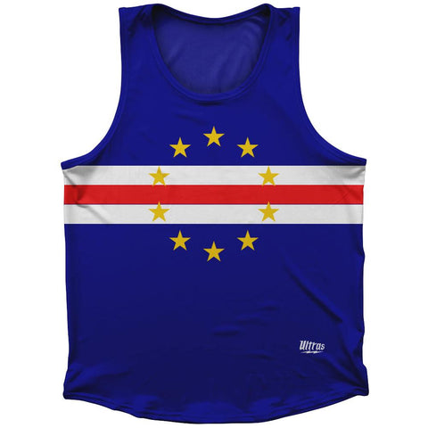 Product Story: Work out and represent in this ultra cool sport tank top.Product Description: Cape Verde Country Flag Sport Tank Top Made In USA. Work out and represent in this ultra cool sport tank top. 4 Way Stretch Premium Micro-Fiber Sport Material 100% Polyester Sublimated Print Smooth and Comfortable Moisture Wicking Customizable Team Discounts Made in USA