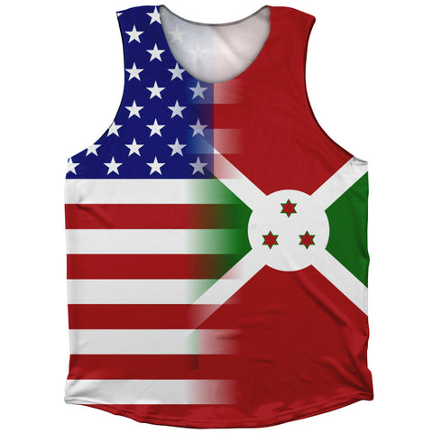 Product Story: American Flag And Burundi Flag Combination Running Racerback Singlet Track Tank TopProduct Description: American Flag And Burundi Flag Combination Running Racerback Singlet Track Tank Top Lightweight Polyester Sublimation Forever Color Lasting Perfect Fit Made in USA