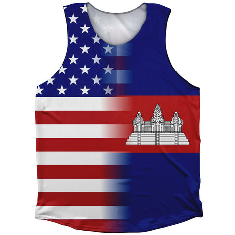 Product Story: American Flag And Cambodia Flag Combination Running Racerback Singlet Track Tank TopProduct Description: American Flag And Cambodia Flag Combination Running Racerback Singlet Track Tank Top Lightweight Polyester Sublimation Forever Color Lasting Perfect Fit Made in USA