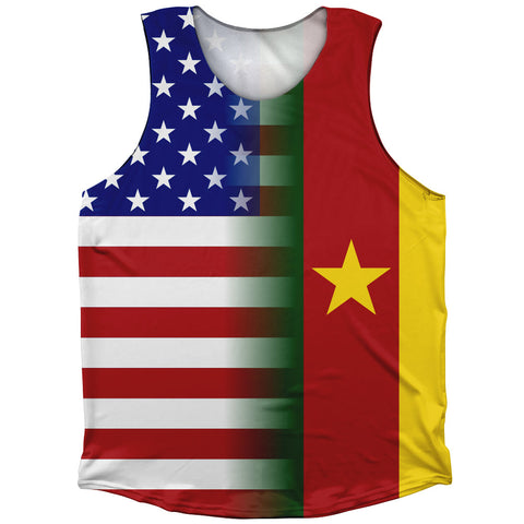 Product Story: American Flag And Cameroon Flag Combination Running Racerback Singlet Track Tank TopProduct Description: American Flag And Cameroon Flag Combination Running Racerback Singlet Track Tank Top Lightweight Polyester Sublimation Forever Color Lasting Perfect Fit Made in USA
