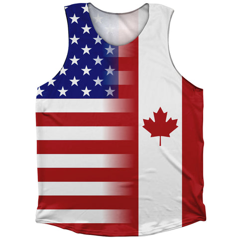 Product Story: American Flag And Canada Flag Combination Running Racerback Singlet Track Tank TopProduct Description: American Flag And Canada Flag Combination Running Racerback Singlet Track Tank Top Lightweight Polyester Sublimation Forever Color Lasting Perfect Fit Made in USA