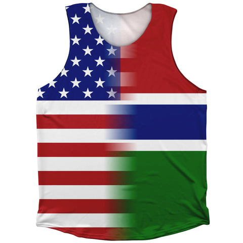 Product Story: American Flag And Gambia Flag Combination Running Racerback Singlet Track Tank TopProduct Description: American Flag And Gambia Flag Combination Running Racerback Singlet Track Tank Top Lightweight Polyester Sublimation Forever Color Lasting Perfect Fit Made in USA
