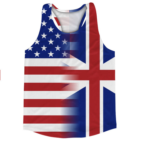 Product Story: American Flag And Great Britain Flag Combination Running Racerback Singlet Track Tank TopProduct Description: American Flag And Great Britain Flag Combination Running Racerback Singlet Track Tank Top Lightweight Polyester Sublimation Forever Color Lasting Perfect Fit Made in USA