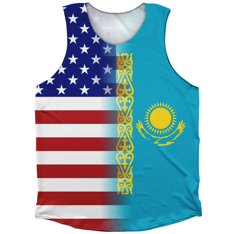 Product Story: American Flag And Kazakhstan Flag Combination Athletic Tank TopProduct Description: American Flag And Kazakhstan Flag Combination Athletic Tank Top Lightweight Polyester Sublimation Forever Color Lasting Perfect Fit Made in USA