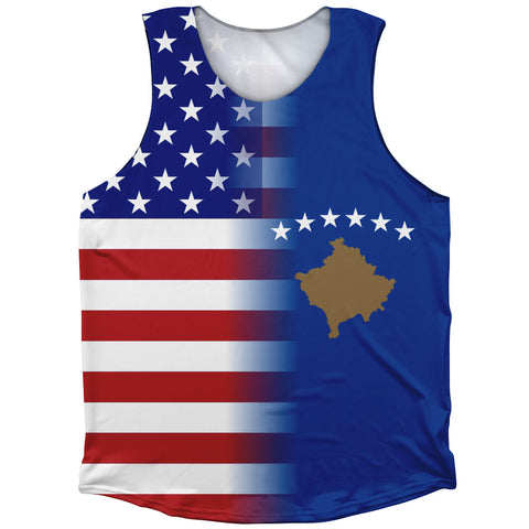 Product Story: American Flag And Kosovo Flag Combination Running Racerback Singlet Track Tank TopProduct Description: American Flag And Kosovo Flag Combination Running Racerback Singlet Track Tank Top Lightweight Polyester Sublimation Forever Color Lasting Perfect Fit Made in USA