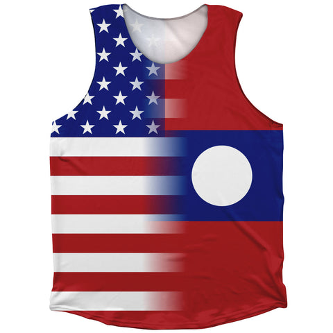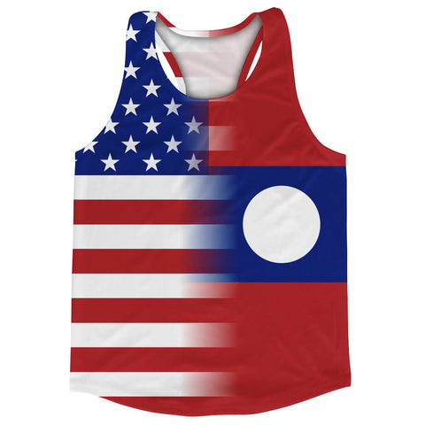 Product Story: American Flag And Laos Flag Combination Running Racerback Singlet Track Tank TopProduct Description: American Flag And Laos Flag Combination Running Racerback Singlet Track Tank Top Lightweight Polyester Sublimation Forever Color Lasting Perfect Fit Made in USA