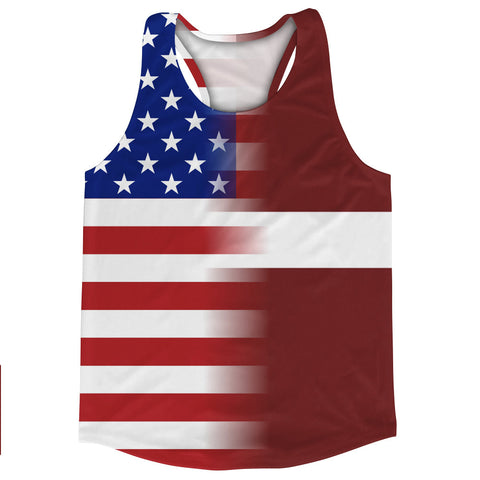 Product Story: American Flag And Latvia Flag Combination Running Racerback Singlet Track Tank TopProduct Description: American Flag And Latvia Flag Combination Running Racerback Singlet Track Tank Top Lightweight Polyester Sublimation Forever Color Lasting Perfect Fit Made in USA
