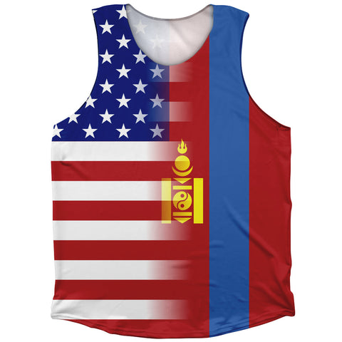Product Story: American Flag And Mongolia Flag Combination Running Racerback Singlet Track Tank TopProduct Description: American Flag And Mongolia Flag Combination Running Racerback Singlet Track Tank Top Lightweight Polyester Sublimation Forever Color Lasting Perfect Fit Made in USA