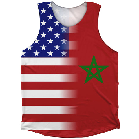 Product Story: American Flag And Morocco Flag Combination Running Racerback Singlet Track Tank TopProduct Description: American Flag And Morocco Flag Combination Running Racerback Singlet Track Tank Top Lightweight Polyester Sublimation Forever Color Lasting Perfect Fit Made in USA