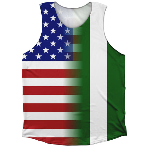 Product Story: American Flag And Nigeria Flag Combination Running Racerback Singlet Track Tank TopProduct Description: American Flag And Nigeria Flag Combination Running Racerback Singlet Track Tank Top Lightweight Polyester Sublimation Forever Color Lasting Perfect Fit Made in USA