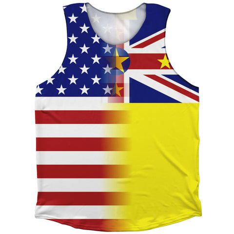 Product Story: American Flag And Niue Flag Combination Running Racerback Singlet Track Tank TopProduct Description: American Flag And Niue Flag Combination Running Racerback Singlet Track Tank Top Lightweight Polyester Sublimation Forever Color Lasting Perfect Fit Made in USA