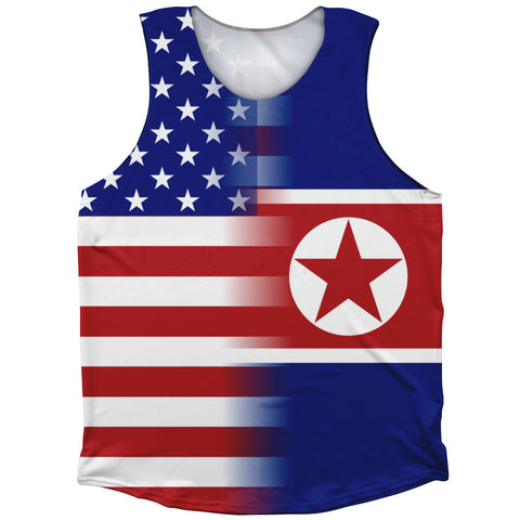 Product Story: American Flag And North Korea Flag Combination Running Racerback Singlet Track Tank TopProduct Description: American Flag And North Korea Flag Combination Running Racerback Singlet Track Tank Top Lightweight Polyester Sublimation Forever Color Lasting Perfect Fit Made in USA