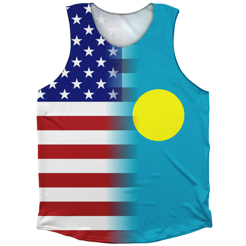 Product Story: American Flag And Palau Flag Combination Running Racerback Singlet Track Tank TopProduct Description: American Flag And Palau Flag Combination Running Racerback Singlet Track Tank Top Lightweight Polyester Sublimation Forever Color Lasting Perfect Fit Made in USA