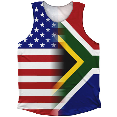 Product Story: American Flag And South Africa Flag Combination Running Racerback Singlet Track Tank TopProduct Description: American Flag And South Africa Flag Combination Running Racerback Singlet Track Tank Top Lightweight Polyester Sublimation Forever Color Lasting Perfect Fit Made in USA