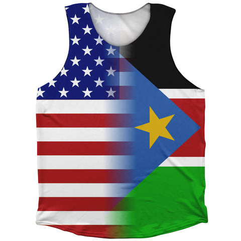 Product Story: American Flag And South Sudan Flag Combination Running Racerback Singlet Track Tank TopProduct Description: American Flag And South Sudan Flag Combination Running Racerback Singlet Track Tank Top Lightweight Polyester Sublimation Forever Color Lasting Perfect Fit Made in USA