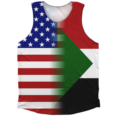 Product Story: American Flag And Sudan Flag Combination Running Racerback Singlet Track Tank TopProduct Description: American Flag And Sudan Flag Combination Running Racerback Singlet Track Tank Top Lightweight Polyester Sublimation Forever Color Lasting Perfect Fit Made in USA