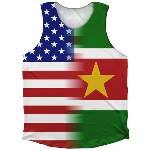 Product Story: American Flag And Suriname Flag Combination Running Racerback Singlet Track Tank TopProduct Description: American Flag And Suriname Flag Combination Running Racerback Singlet Track Tank Top Lightweight Polyester Sublimation Forever Color Lasting Perfect Fit Made in USA