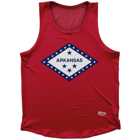 Product Story: Arkansas State Flag Sport Tank Top Made In USA. Work out and represent in this ultra cool sport tank top.Product Description: Arkansas State Flag Sport Tank Top Made In USA. Work out and represent in this ultra cool sport tank top. 4 Way Stretch Premium Micro-Fiber Sport Material 100% Polyester Sublimated Print Smooth and Comfortable Moisture Wicking Customizable...