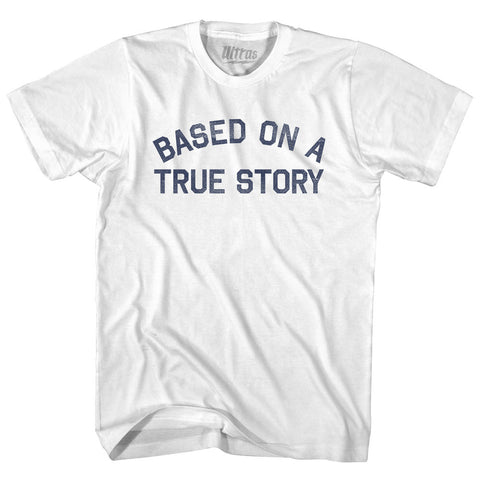 Product Story: Based On A True Story Youth Cotton T-shirtProduct Description: Based On A True Story Youth Cotton T-shirt Cotton Buttery Smooth Soft Material Medium Weight Tee Soft Hand Print