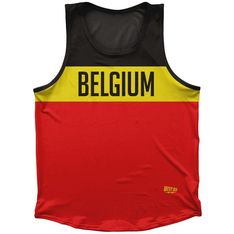 Product Story: Work out and represent in this ultra cool sport tank top.Product Description: Belgium Country Flag Sport Tank Top Made In USA. Work out and represent in this ultra cool sport tank top. 4 Way Stretch Premium Micro-Fiber Sport Material 100% Polyester Sublimated Print Smooth and Comfortable Moisture Wicking Customizable Team Discounts Made in USA