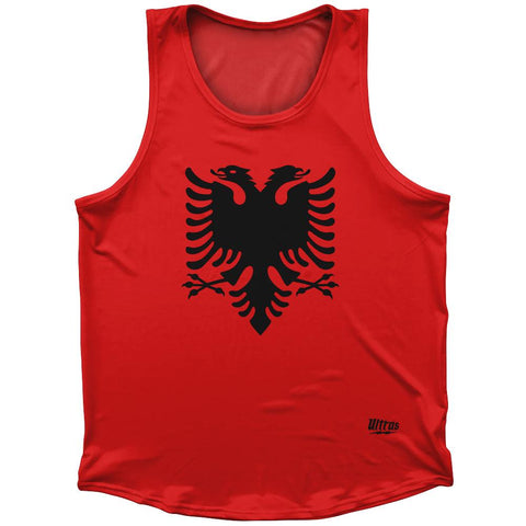 Product Story: Work out and represent in this ultra cool sport tank top.Product Description: Albania Country Flag Sport Tank Top Made In USA. Work out and represent in this ultra cool sport tank top. 4 Way Stretch Premium Micro-Fiber Sport Material 100% Polyester Sublimated Print Smooth and Comfortable Moisture Wicking Customizable Team Discounts Made in USA
