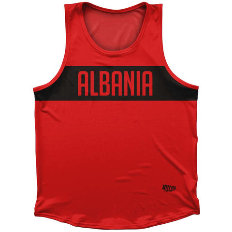 Product Story: Albania Country Finish Line Sport Tank Top Made In USA. Work out and represent in this ultra cool sport tank top.Product Description: Albania Country Finish Line Sport Tank Top Made In USA.Work out and represent in this ultra cool sport tank top. 4 Way Stretch Premium Micro-Fiber Sport Material 100% Polyester Sublimated Print Smooth and Comfortable Moisture Wicking...