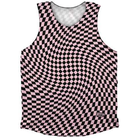 Product Story: Black And Light Pink Running Warped Checkerboard Racerback Singlet Track Tops Made In USA Product Description: Black And Light Pink Running Warped Checkerboard Racerback Singlet Track Tops Made In USA Performance Running Top Team Discounts Polyester 100% Polyester