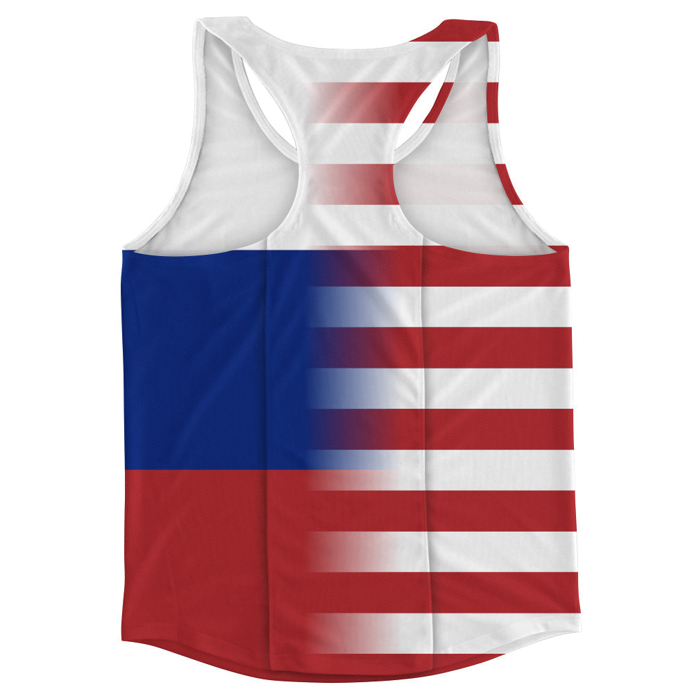• American Flag And Russia Flag Combination Running Racerback Singlet Track Tank Top
