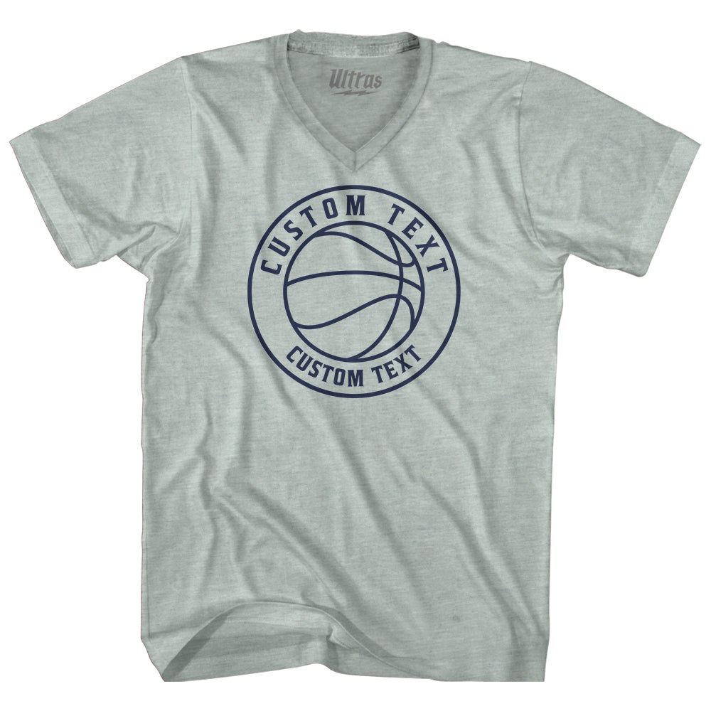 - Basketball Custom Text Adult Tri-Blend V-neck T-shirt