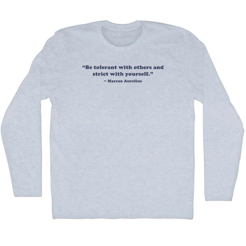 • Be Tolerant With Others And Strict With Yourself. - Marcus Aurelius Quote Tees Adult Tri-Blend Long Sleeve T-shirt