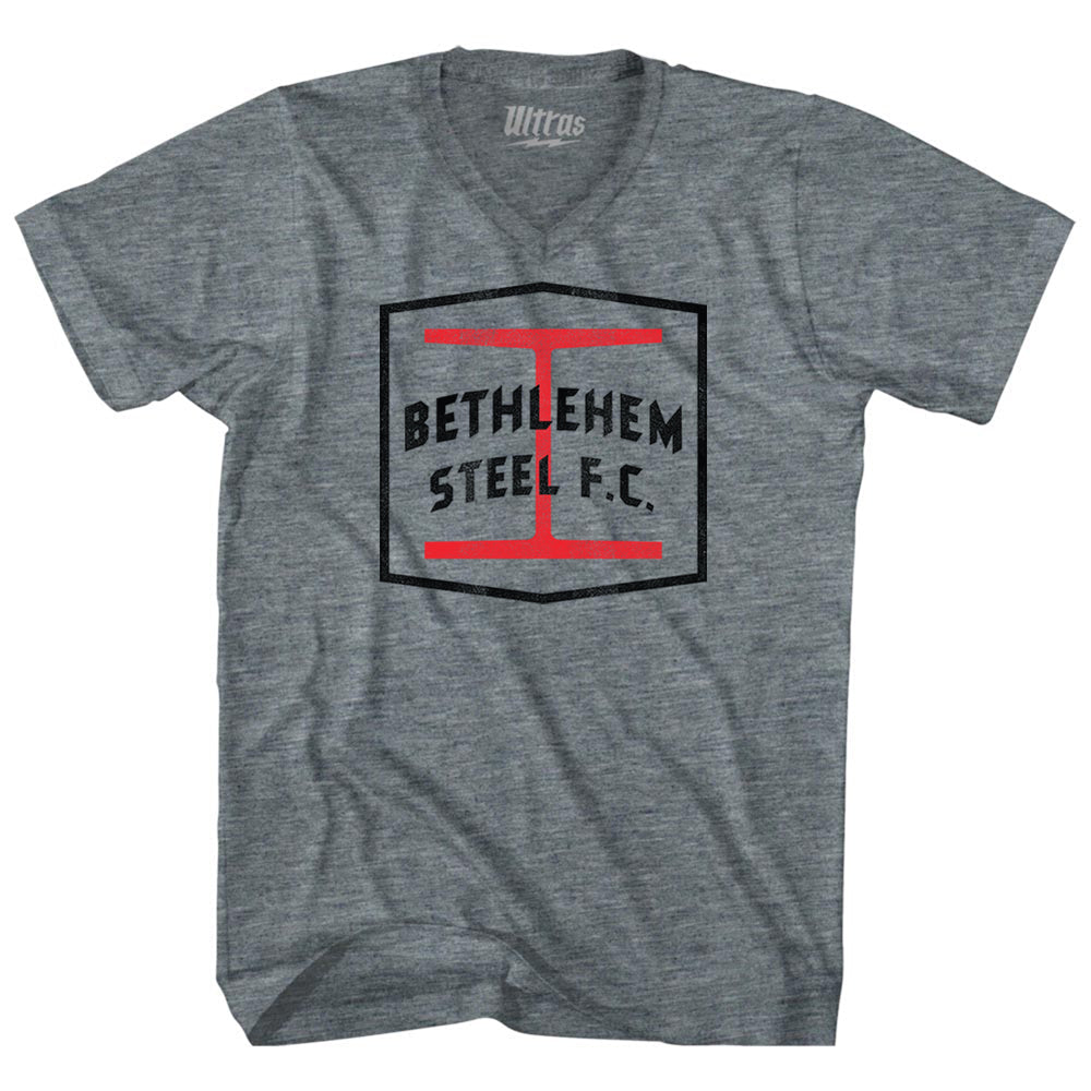 - Bethlehem Steel Fc Crest Soccer Tri-Blend V-neck Womens Junior Cut T-shirt
