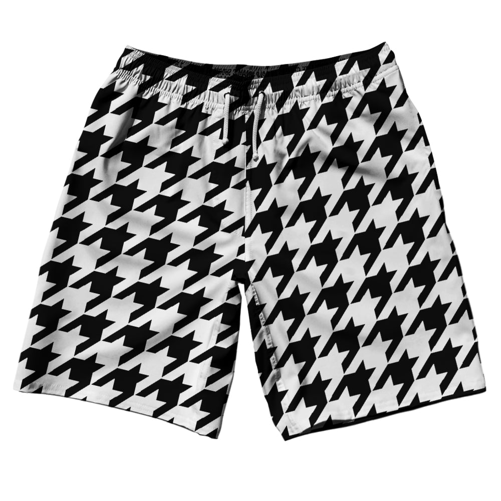 Black And White Houndstooth 10" Swim Shorts Made In USA