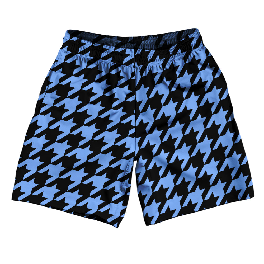 Blue Carolina And Black Houndstooth Soccer Shorts Made In USA