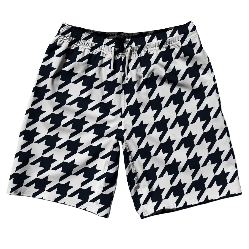 - Blue Navy Almost Black And White Houndstooth 10" Swim Shorts Made In USA