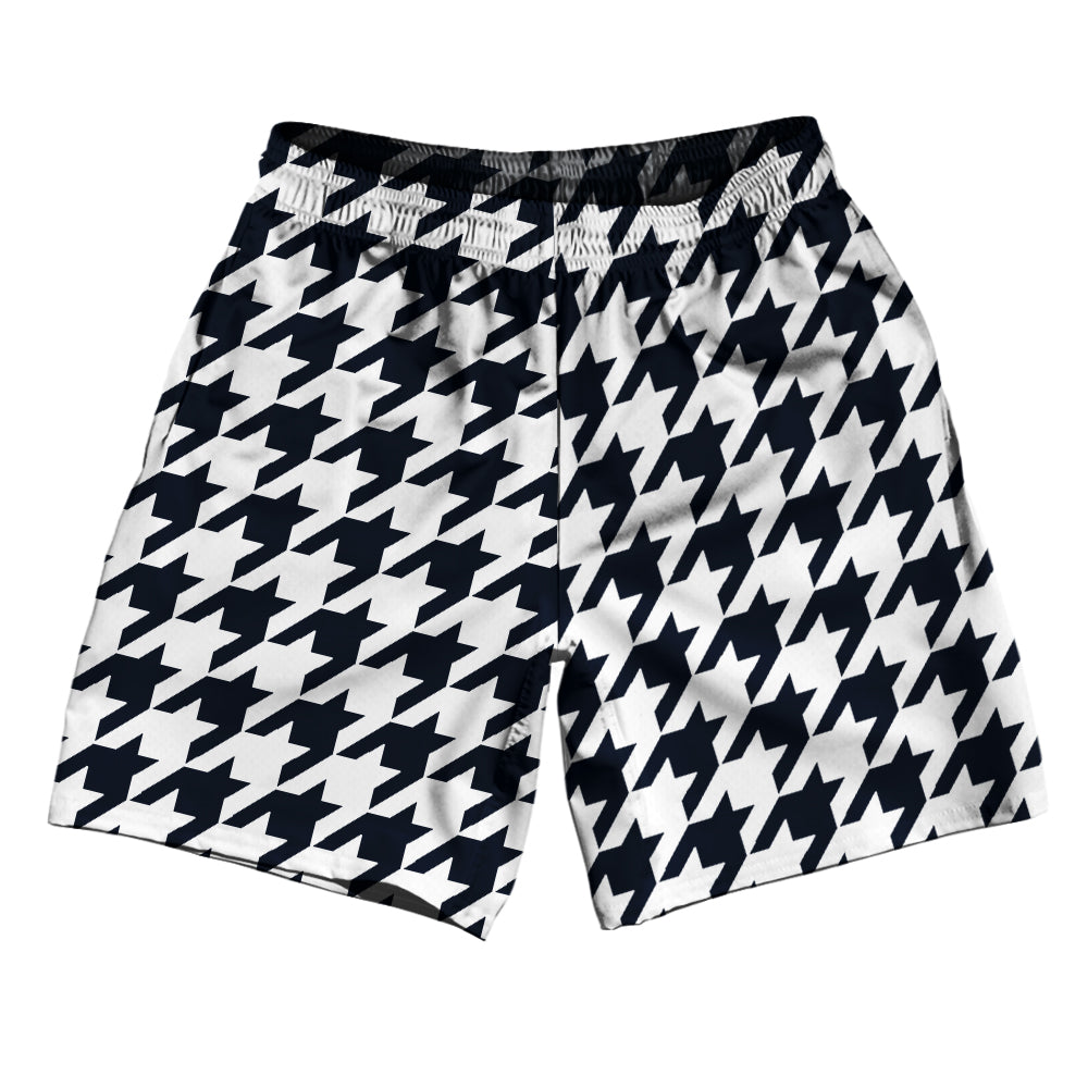 • Blue Navy Almost Black And White Houndstooth Soccer Shorts Made In USA