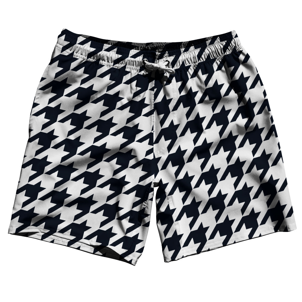 • Blue Navy Almost Black And White Houndstooth Swim Shorts 7" Made In USA