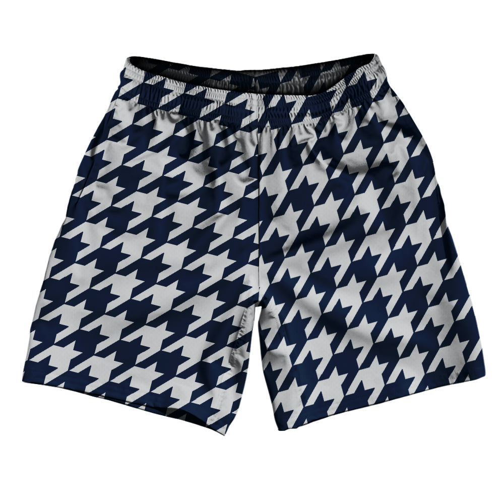 - Blue Navy And Grey Medium Houndstooth Athletic Running Fitness Exercise Shorts 7" Inseam Shorts Made In USA
