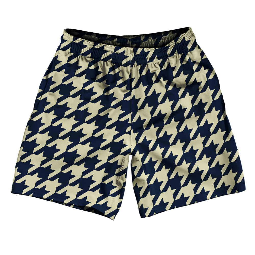 Blue Navy And Vegas Gold Houndstooth Athletic Running Fitness Exercise Shorts 7" Inseam Shorts Made In USA