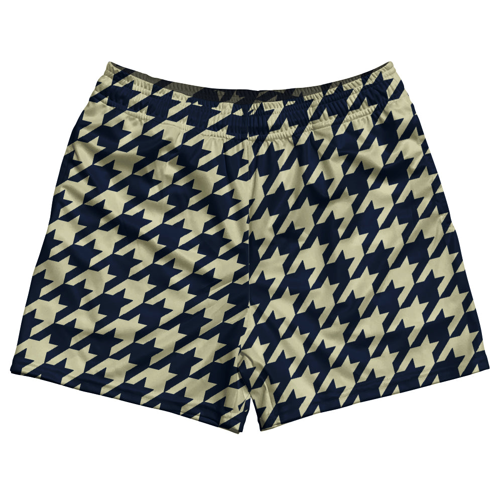 - Blue Navy And Vegas Gold Houndstooth Rugby Shorts Made In USA