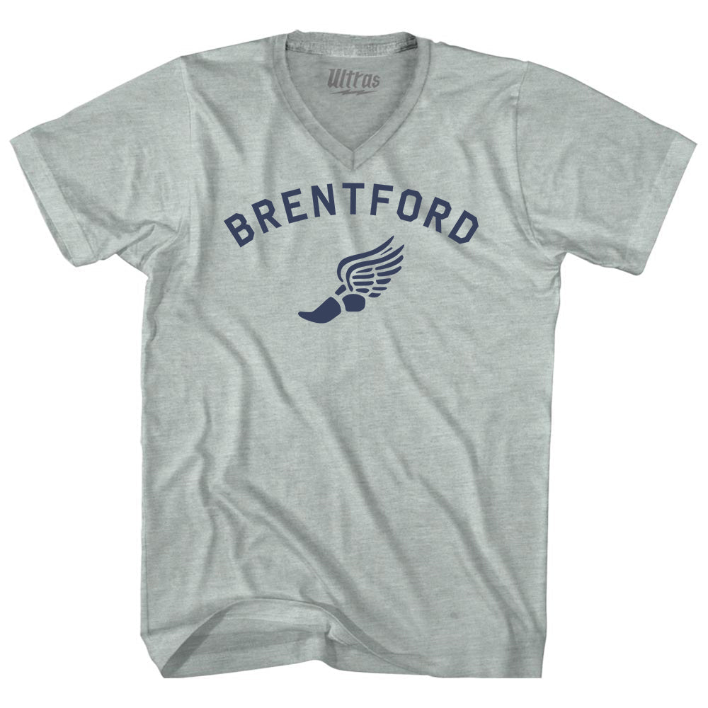 - Brentford Running Track Winged Foot-Adult Tri-Blend V-neck T-shirt
