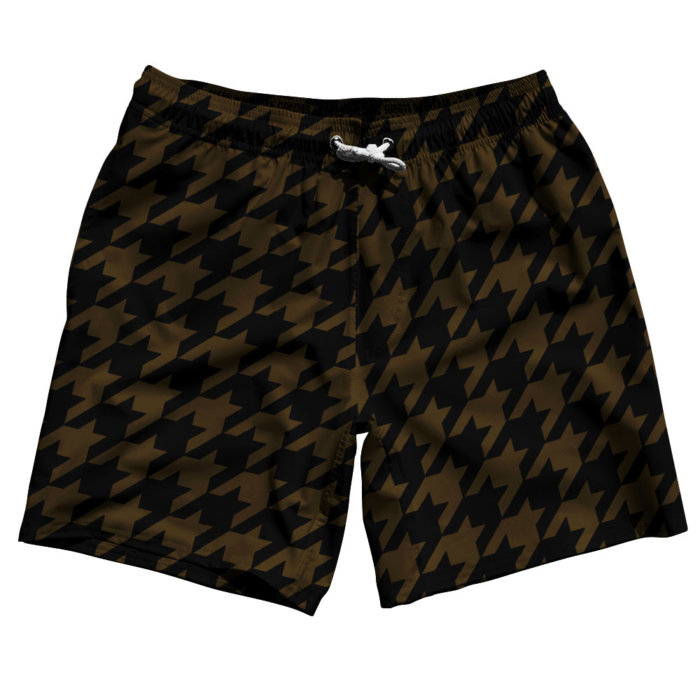 Brown Dark And Black Houndstooth Swim Shorts 7" Made In USA