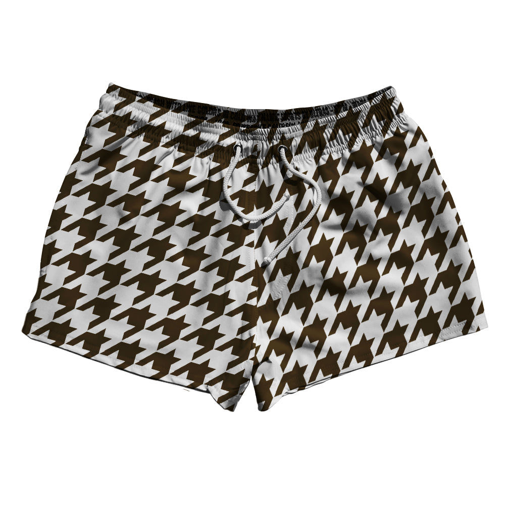 - Brown Dark And White Houndstooth 2.5" Swim Shorts Made In USA