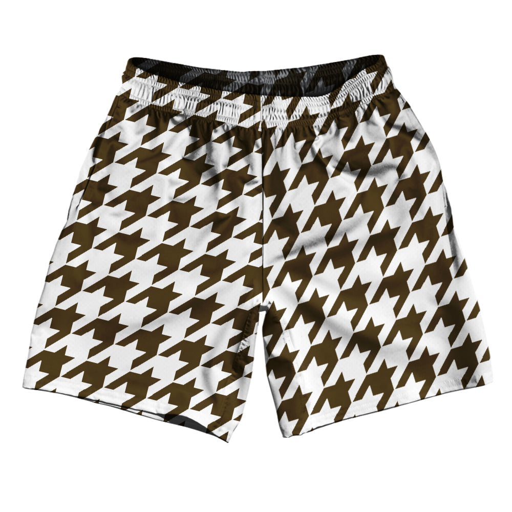 • Brown Dark And White Houndstooth Soccer Shorts Made In USA