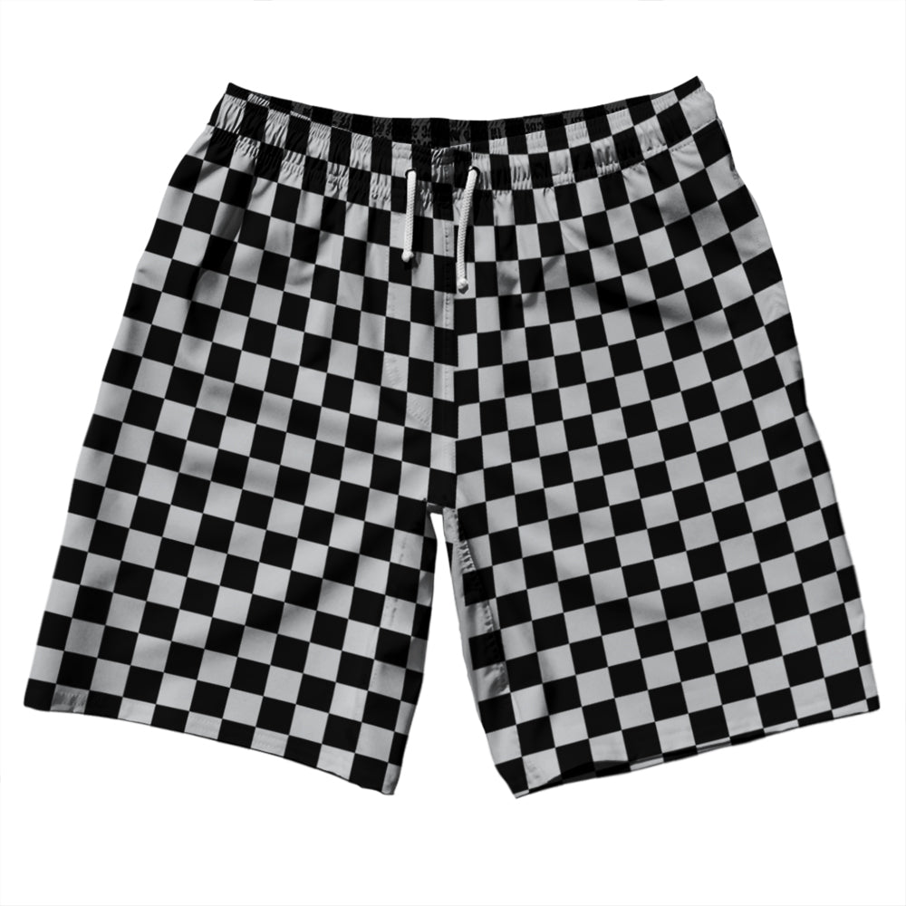 • Checkerboard 1 Inch Black and Grey Medium 10" Swim Shorts Made in USA