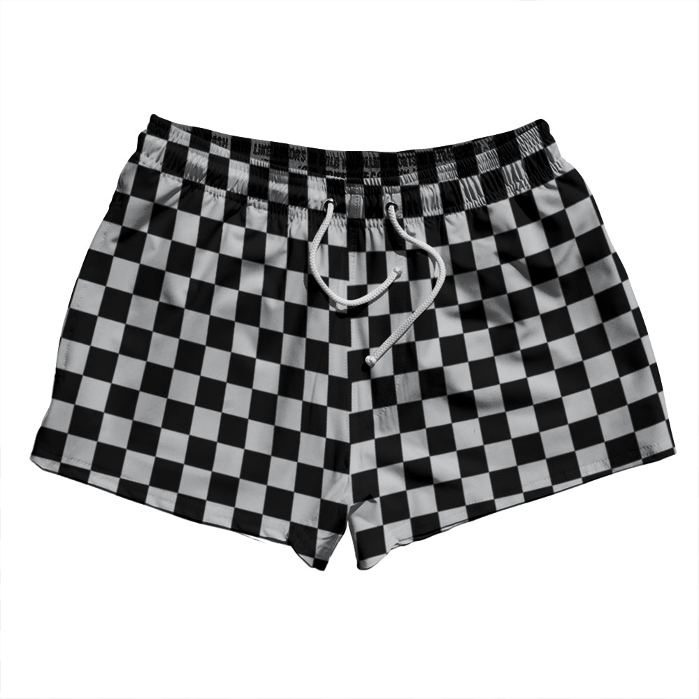 Checkerboard 1 Inch Black and Grey Medium 2.5" Swim Shorts Made in USA