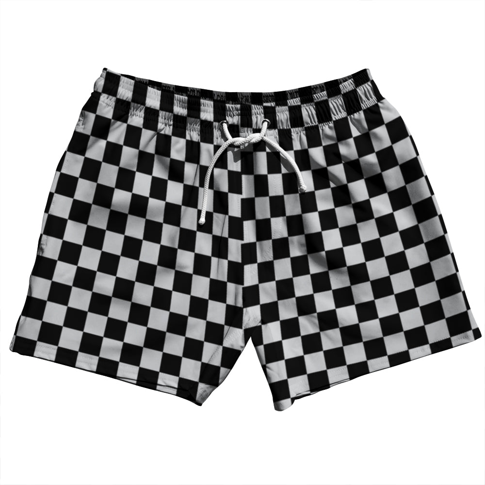 Checkerboard 1 Inch Black and Grey Medium 5" Swim Shorts Made in USA