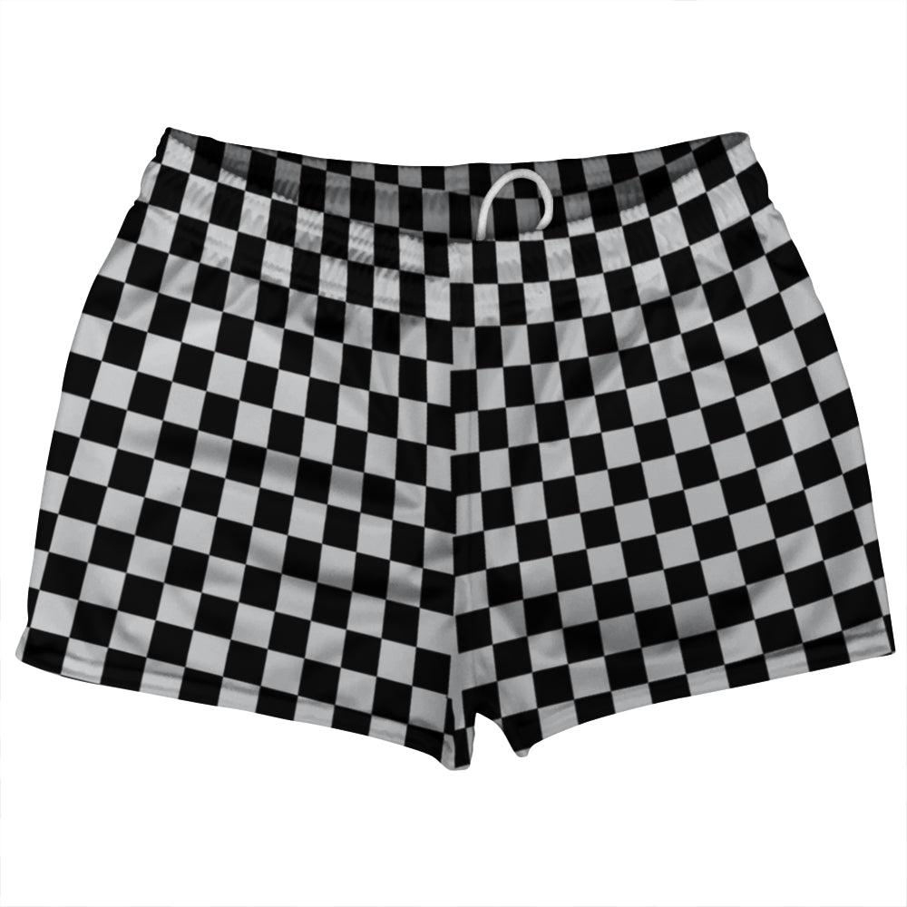 • Checkerboard 1 Inch Black and Grey Medium Shorty Short Gym Shorts 2.5" Inseam Made In USA