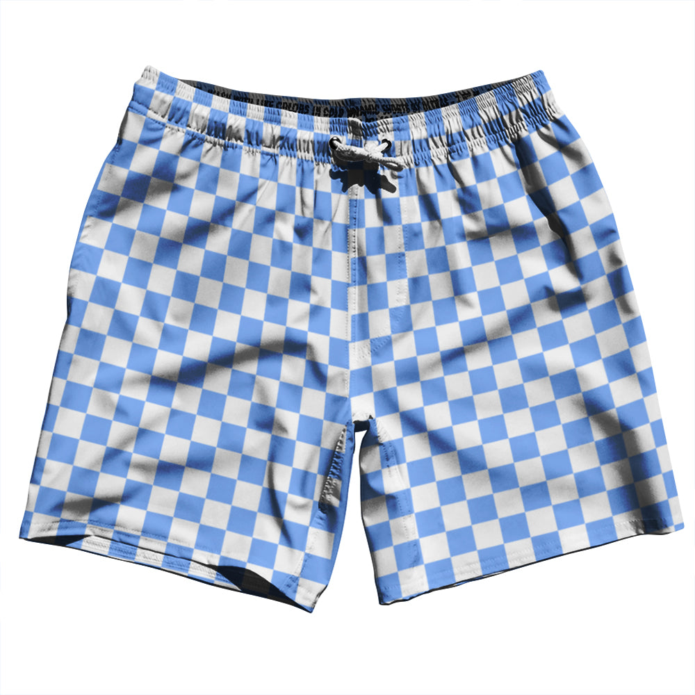 Checkerboard 1 Inch Blue Carolina and White Swim Shorts 7" Made in USA